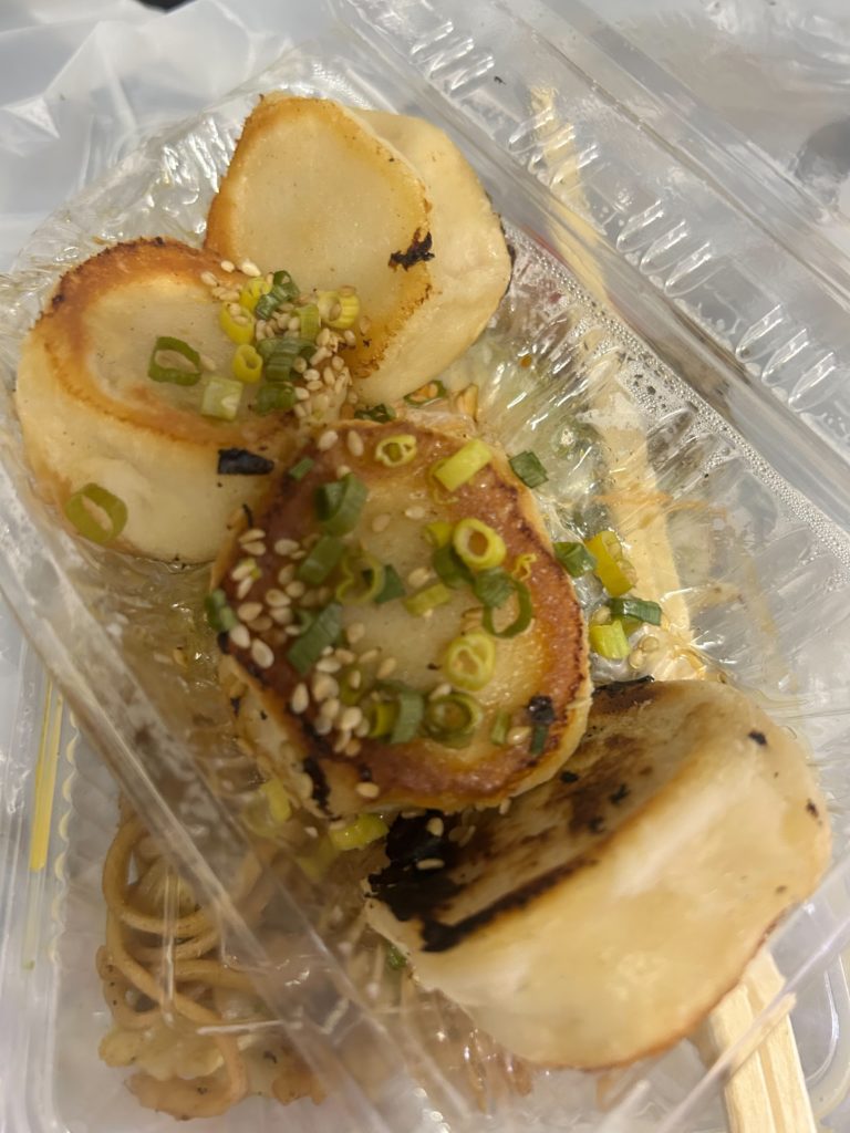 こちらはそば稲荷!お米の代わりにそばが入っており暑い夏にぴったりの一品