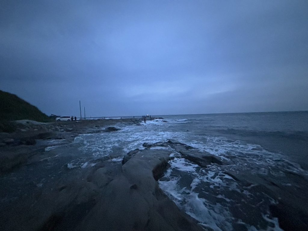 4時に入磯するも早くも超満員の一級磯、仕方なく開いているポイントに入って粘りますが、全然つれません。。。