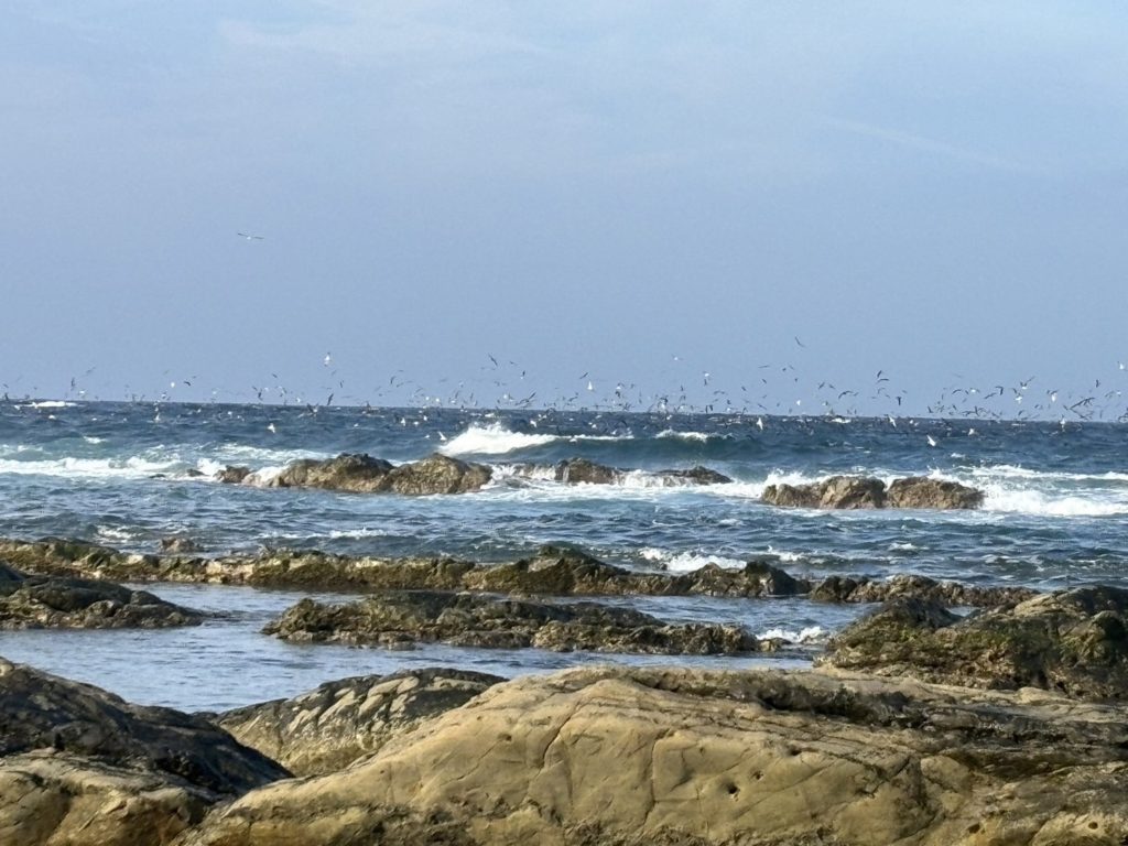 そうです、あの鳥たちの下に小さい小さい魚たちがいるのです。